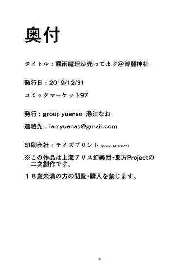 Kirisame Marisa Uttemasu @ Hakurei Jinja